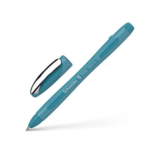 Guľôčkové pero, 0,7 mm, s vrchnákom, SCHNEIDER "Slider Memo XB", pávia modrá