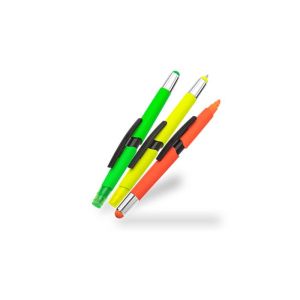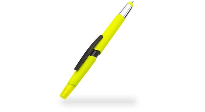 Multifunkčné pero! -1 telo viac funkcií -ideálne na dotykové displeje (koniec vrchnáku) -ideálne na písanie poznámok -ideálne na zvýraznenie podstatného obsahu -3 rôzne neónové farby (2 x neónovo žlté, 1 x neónovo zelené, 1 x neónovo oranžové) -farba atramentu guľôčkového pera: modrá -farba zvýrazňovača sa zhoduje s farbou tela pera -odolný klip -rozmery: 14 x 1,7 cm