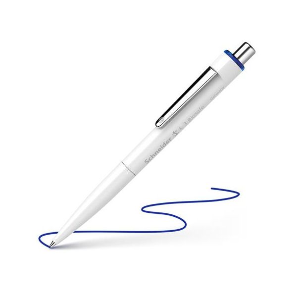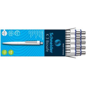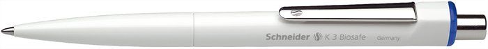 Guľôčkové pero, 0,5 mm, stláčací mechanizmus, SCHNEIDER "K3 Biosafe", modrá