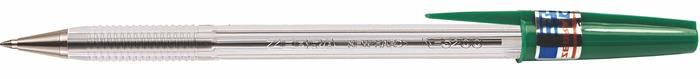 Jednorazové guličkové pero s transparentným čírym telom, so zakončením a uzáverom vo farbe náplne. Zelená farba a priemer 1,0 mm.