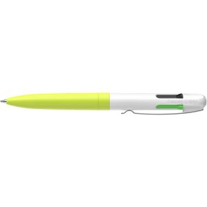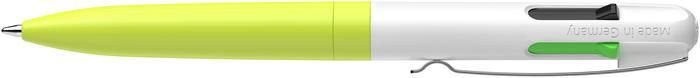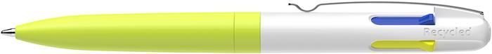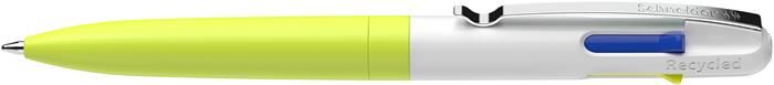 Guľôčkové pero, 0,5 mm, stláčací mechanizmus, 4 farby, SCHNEIDER "Take 4 Neon", žlté-biele