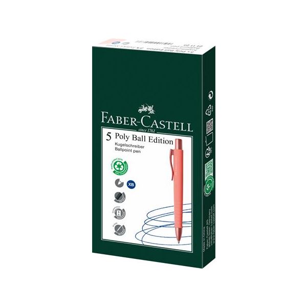 Guľôčkové pero, 0,7 mm, stláčací mechanizmus, koralové telo pera, FABER-CASTELL "Poly Ball Urban", modré