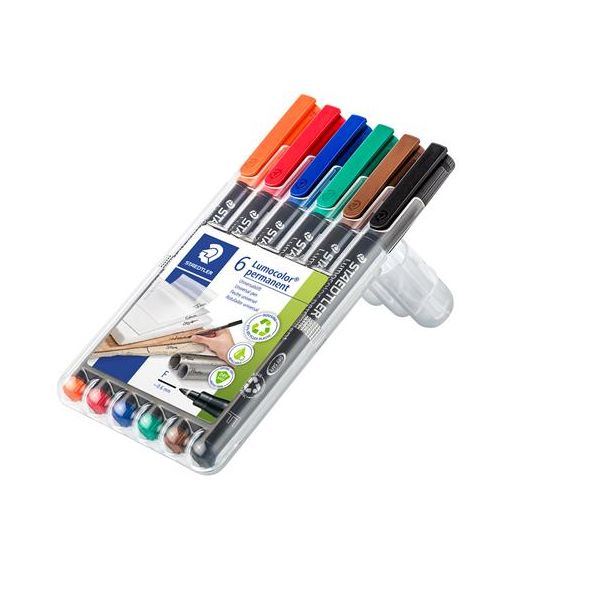 Permanentný popisovač, sada, 0,6 mm, STAEDTLER "Lumocolor® 318", 6 rôznych farieb