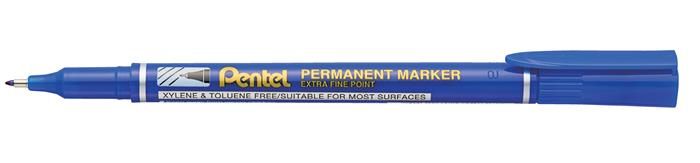Permanentný popisovač - modrý. Píše na väčšinu povrchov - píše na papier, gumu, kožu, plasty, kovy. Odolá vode, oteru, poveternostným vplyvom. Atrament na alkoholovej báze. Valcový hrot so šírkou stopy 2 mm.