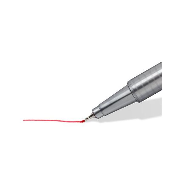 Jednorazový liner. Vláknový hrot v kovovej objímke, telo linera vo farbe atramentu. Ventilačný uzáver vo farbe atramentu so šesťhranným hrotom. Atrament na vodnej báze, odolný voči vysychaniu, bez zápachu, netoxický.dĺžka písacej linky: 500-600mpísacia čiara: 0,4 mmhrot: 0,4 mmdodáva sa v 4 farbách (čierna, červená, modrá, zelená) v balení 10 kusov v jednej farbeideálne na vytváranie farebných poznámok, prácu so šablónou atď.pre použitie v kancelárii, škole aj domácnosti