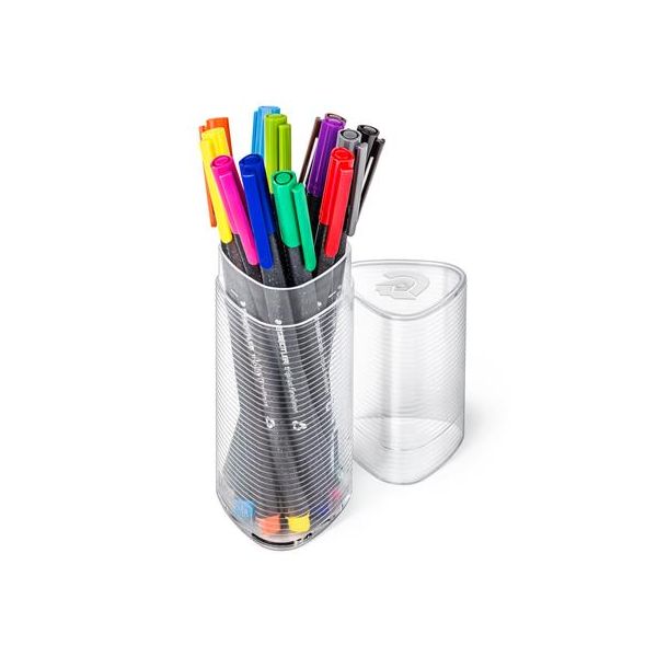 Jemný liner je vhodný nielen pre prácu so šablónami a kreatívne tvorenia, ale aj pre školákov a študentov. Jemný plastový hrot v kovovej objímke so šírkou stopy 0,3 mm. Vyprateľný atrament pri 60 °C. Ergonomická úchopová časť. Farba: šedá.