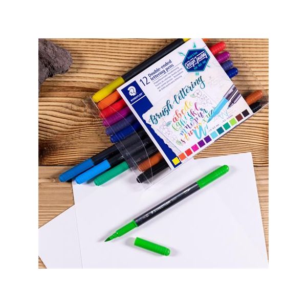 Fixky v tvare štetca, sada, 0,5-0,8/1,0-6,0 mm, obojstranné, STAEDTLER "3004", 12 farieb