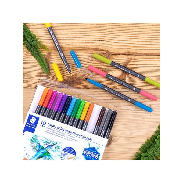 Fixky v tvare štetca, sada, 0,5-0,8/1,0-6,0 mm, obojstranné, STAEDTLER "3001", 18 farieb