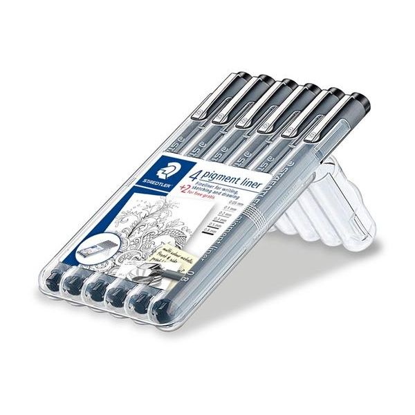 Liner, sada, STAEDTLER "Pigment Liner 308", 4+2 ks, čierna