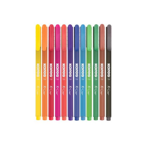 Liner, sada, 0,4 mm, KORES "K-Liner", 12 rôznych farieb