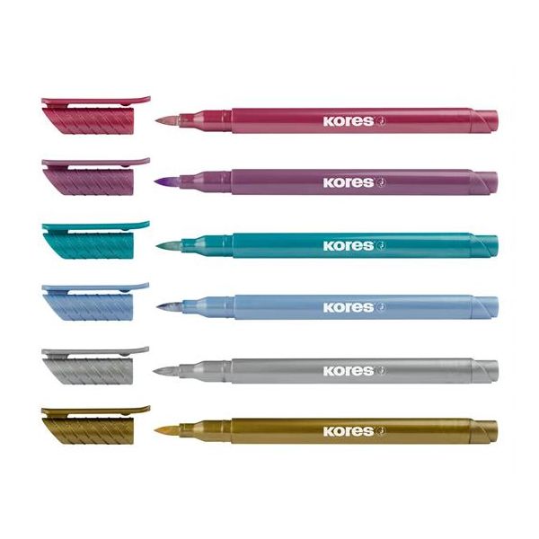 Fixky, sada, KORES "Metallic Style", 6 kovových farieb
