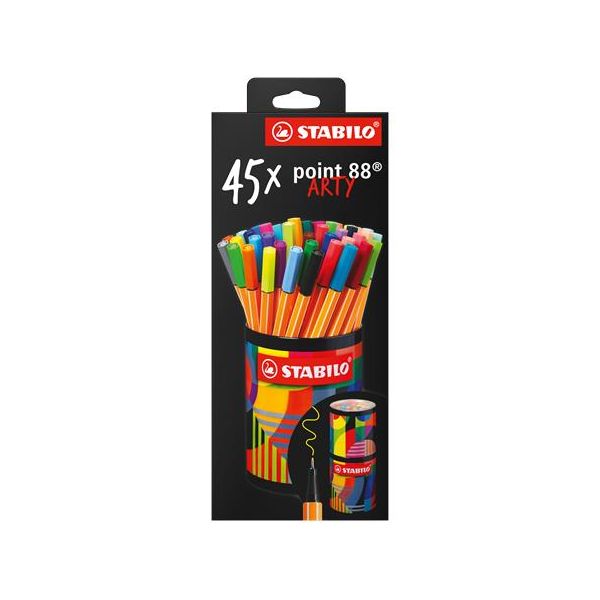 Liner, sada, valcovitá kovová krabica, 0,4 mm, STABILO "point 88 ARTY", 45 rôznych farieb