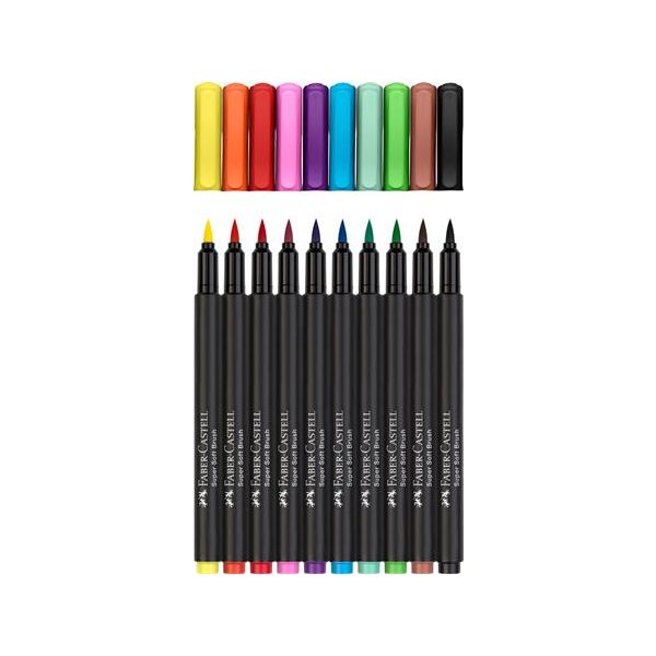 Fixky v rvare štetca, sada, FABER-CASTELL "Black Edition" 10 rôznych farieb