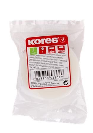 Lepiaca páska, popisovateľná, 12 mm x 33 m, KORES "Invisible", priehľadná