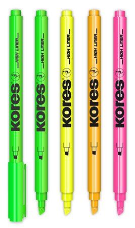 Zvýrazňovač, sada, 0,5-3,5 mm, KORES, 4 rôzne farby