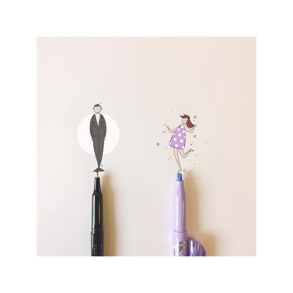 - zabudovaná guma, silný a pružný hrot, prietok atramentu cez viacero kanálov