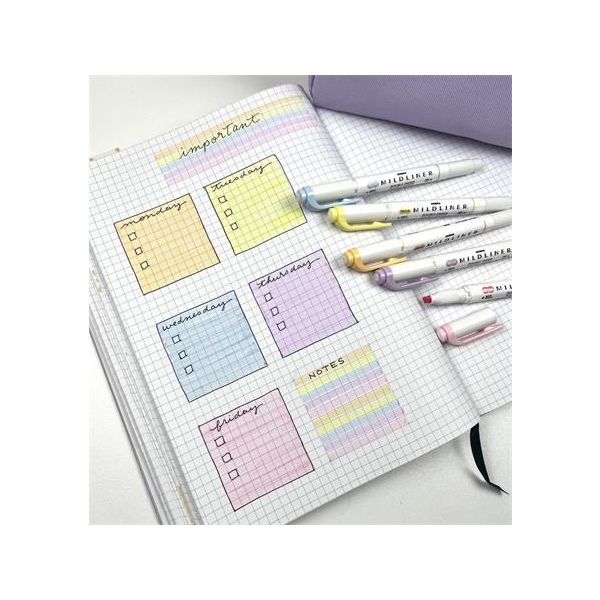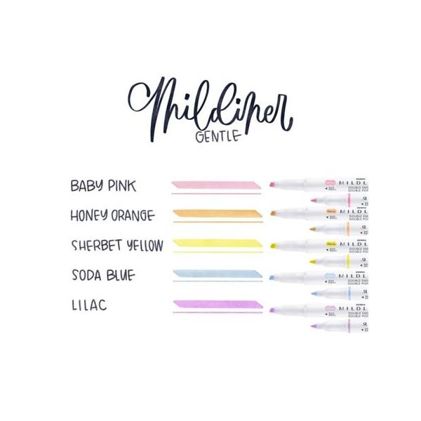 Zvýrazňovač, sada, 1,4/4 mm, obojstranný, ZEBRA "Mildliner Highlighter Gentle", 5 rôznych farieb