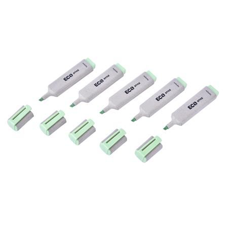 Zvýrazňovač osadený klinovým hrotom so šírkou stopy 1 - 3 mm. Plnený fluorescenčným atramentom, vhodným na všetky druhy papierov, vrátane kopírovacích a faxových. Väčšie balenie 10 ks.Farba: svetlozelenáŠírka stopy: 1-3 mm