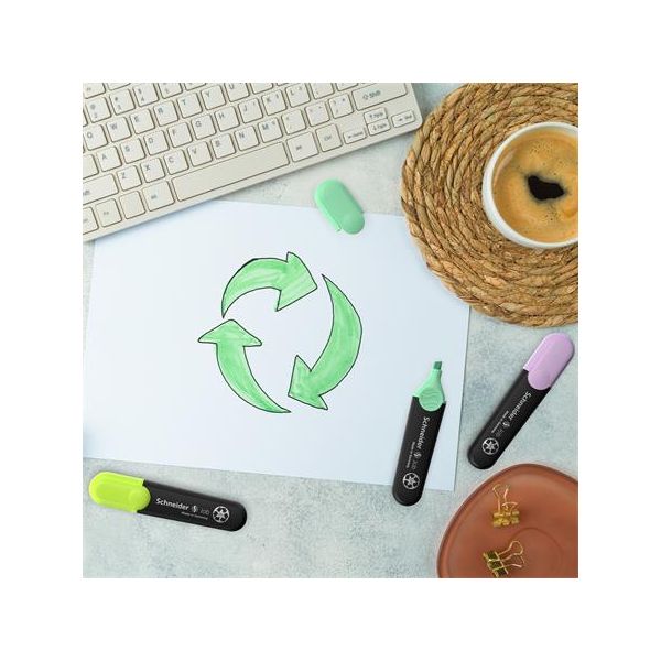 Zvýrazňovač osadený klinovým hrotom so šírkou stopy 1 - 3 mm. Plnený fluorescenčným atramentom, vhodným na všetky druhy papierov, vrátane kopírovacích a faxových. Väčšie balenie 10 ks.Farba: svetlozelenáŠírka stopy: 1-3 mm