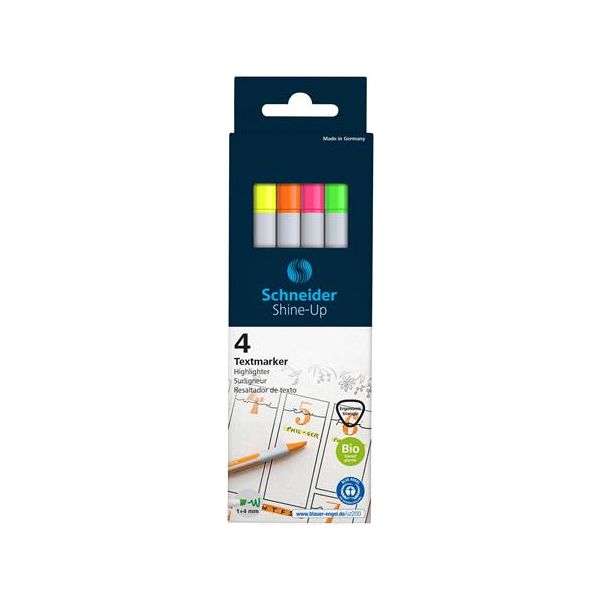 Zvýrazňovač, sada, 1-4 mm, SCHNEIDER "Shine-Up", 4 rôzne farby, 4ks