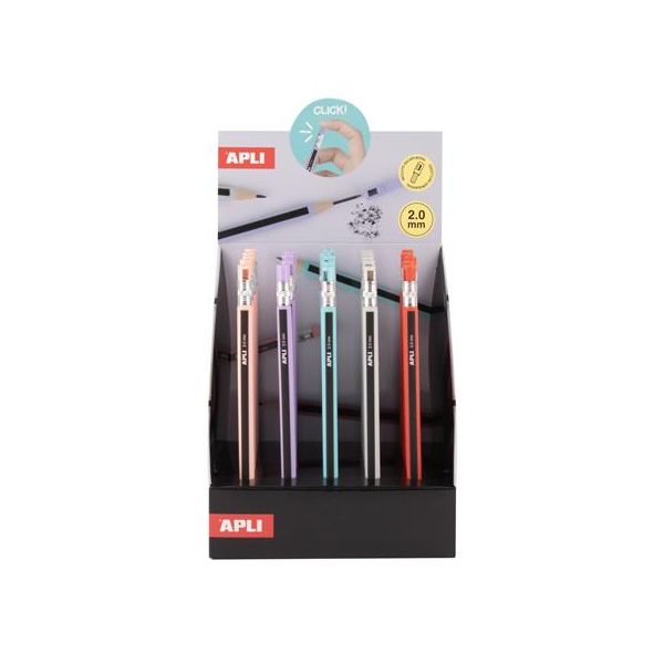 Mechanické ceruzky, displej, 2 mm, so strúhadlom, APLI, v rôznych farbách, 25 ks, 25ks