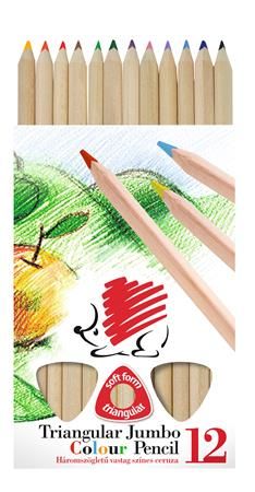 Farebné ceruzky, trojhranný tvar, hrubé, telo prírodnej farby, ICO "Ježko", 12 rôznych farieb
