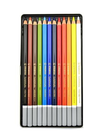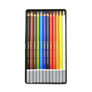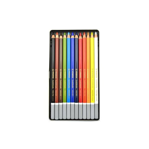 Pastelové ceruzky, sada, okrúhle, plechová krabička, STABILO "CarbOthello", 12 rôznych farieb
