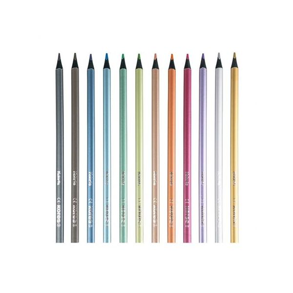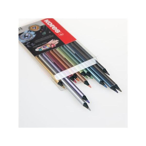 Farebné ceruzky, sada, trojuholníkový tvar, KORES "Kolores Style Metallic", 12 kovových farieb