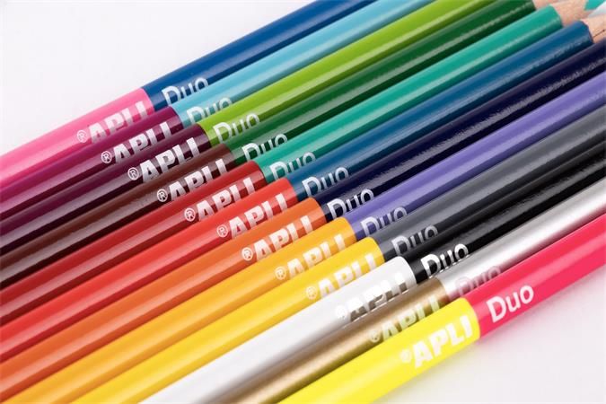 Farebné ceruzky, sada, obojstranné, trojhranné, APLI "Duo", 24 rôznych farieb, 12ks