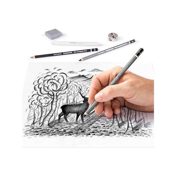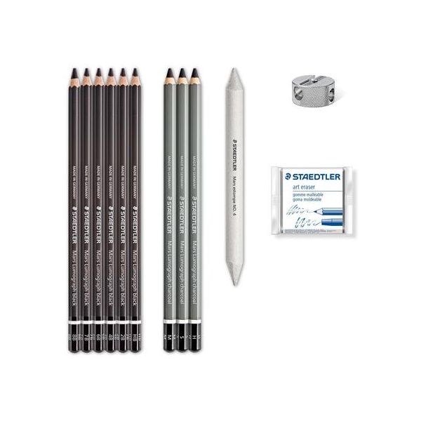 Grafitová ceruzka, so strúhadlom, s gumou, STAEDTLER "Mars Lumograph 100 C", 6 rôznych tvrdostí