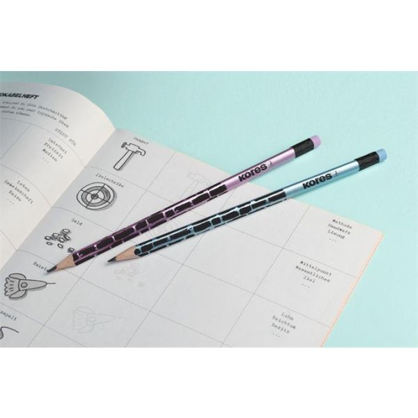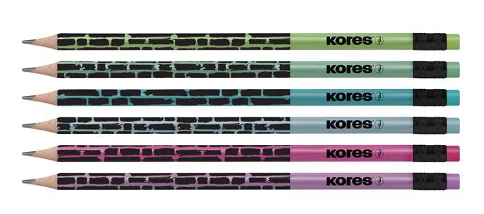 Grafitové ceruzky s gumou, HB, trojuholníkový tvar, KORES "Style Cracked", mix kovových farieb