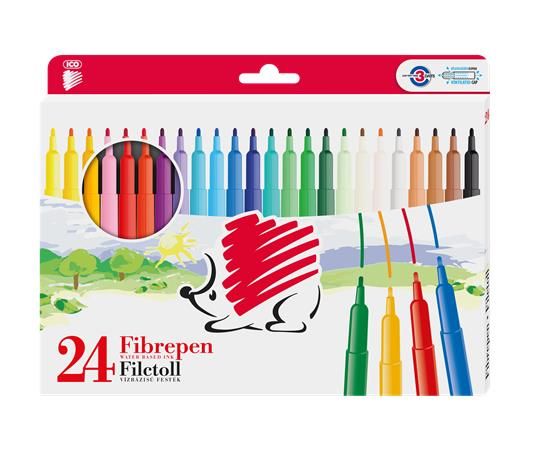 Popisovače vyrobené z PP s ventilačným bezpečenostným uzáverom a vláknovým hrotom odolným voči zatlačeniu. Sú zdravotne nezávadné a vyprateľné. Odolné voči vyschnutiu počas 3 rokov. Šírka stopy: 1,8 mm. Dodávaný v sade 4, 6 alebo 12 farieb.