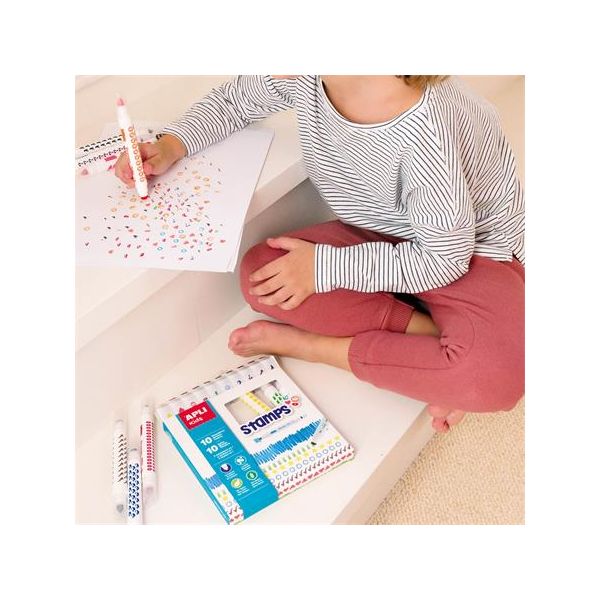 Fixky, sada, na pečiatkovanie, APLI Kids "Markers Duo Stamps", 10 rôznych farieb a motívov, 10ks