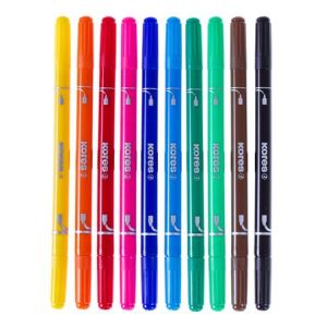Fixky, sada, 1-3 mm, vyprateľné, KORES "Korellos 2in1", 10 rôznych farieb, 10ks