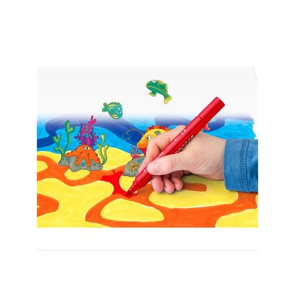 Popisovače vyrobené z PP s ventilačným bezpečenostným uzáverom a vláknovým hrotom odolným voči zatlačeniu. Sú zdravotne nezávadné a vyprateľné. Odolné voči vyschnutiu počas 3 rokov. Šírka stopy: 1,8 mm. Dodávaný v sade 4, 6 alebo 12 farieb.