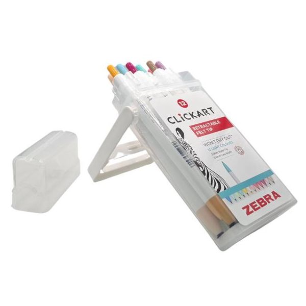Popisovač, sada, stláčací mechanizmus, 0,6 mm, ZEBRA "Clickart" 12 rôznych pastelových farieb, 12ks