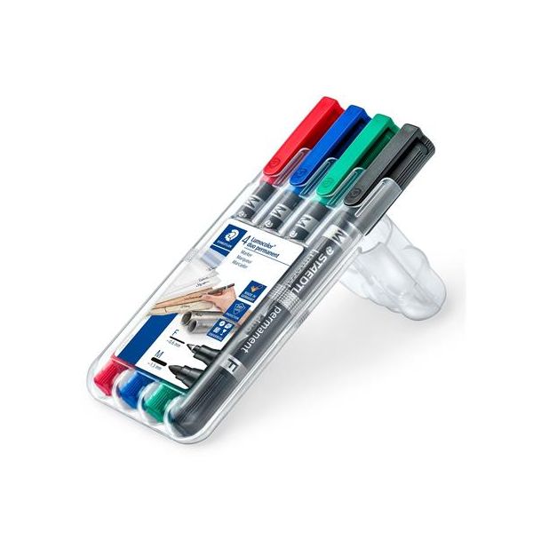 Permanentný popisovač, sada, F/M, 0,6/1,5 mm, kužeľový hrot, s 2 hrotmi, STAEDTLER "Lumocolor Duo", 4 rôzne farby
