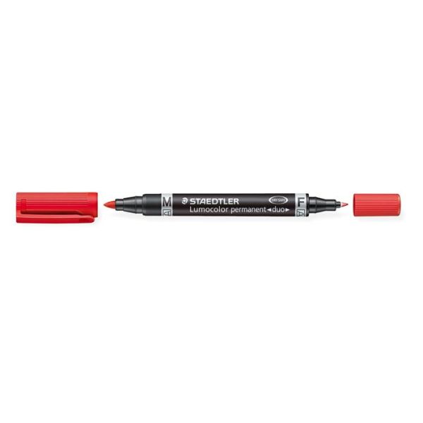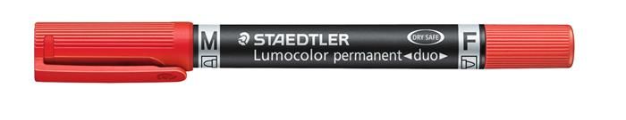 Permanentný popisovač, F/M, 0,6/1,5 mm, kužeľový, s 2 hrotmi, STAEDTLER "Lumocolor Duo", červený