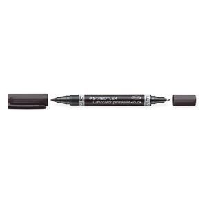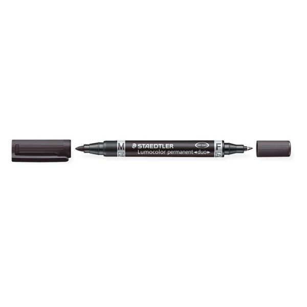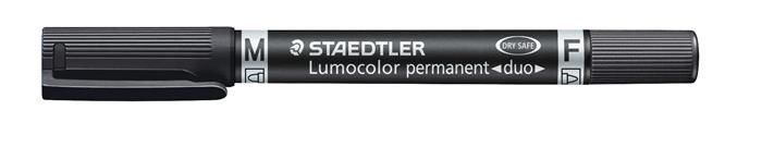 Permanentný popsiovač, F/M, 0,6/1,5 mm, kužeľový hrot, s 2 hrotmi, STAEDTLER "Lumocolor Duo", čierny