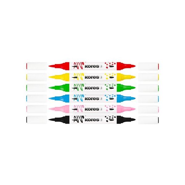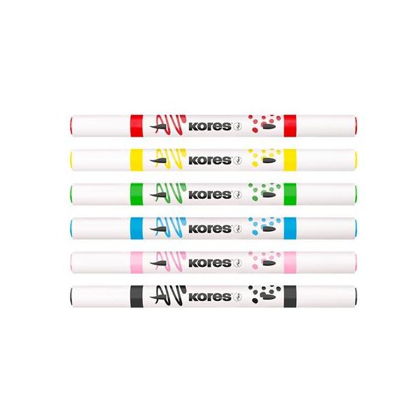 Dekoračný popisovač, sada, akrylový, 1-2 mm, obojstranný, KORES " K-Kreative", 6 rôznych farieb