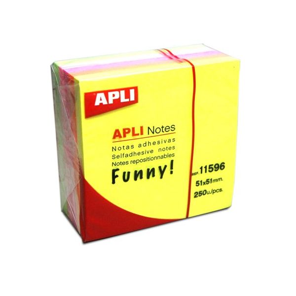 Samolepiaci bloček, 51x51 mm, 250 listov, APLI, neónový