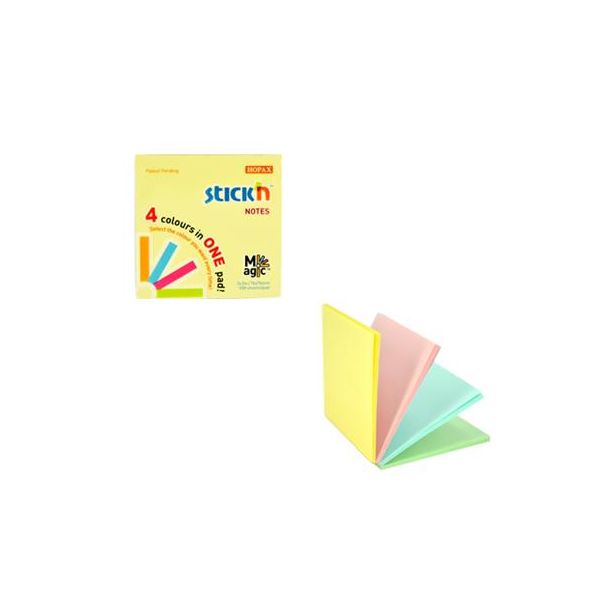 Samolepiaci poznámkový blok, 76x76 mm, 100 listov, STICK N "Magic Pad", pastelové farby