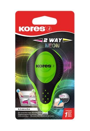 Korekčný roller, 4,2 mm x 8 m, KORES "2WAY Neon", rôzne farby