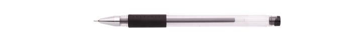 Gélové pero s transparentným telom a vrchnákom vo farbe náplne, priemer guľôčky 0,7 mm, farba čierna.