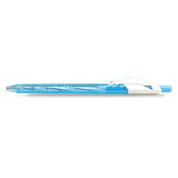 Gélové pero s transparentným plastovým telom, jednofarebným ergonomicky tvarovaným úchopom. Vymeniteľná gélová náplň modrej farby, šírka stopy 0,5 mm. Horná časť dekoračne potlačená detským motívom.