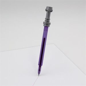 Gélové pero s transparentným plastovým telom, jednofarebným ergonomicky tvarovaným úchopom. Vymeniteľná gélová náplň modrej farby, šírka stopy 0,5 mm. Horná časť dekoračne potlačená detským motívom.