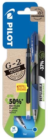 Gélové pero, 0,32 mm, stláčací mechanizmus, PILOT "G-2", modrá + náplň