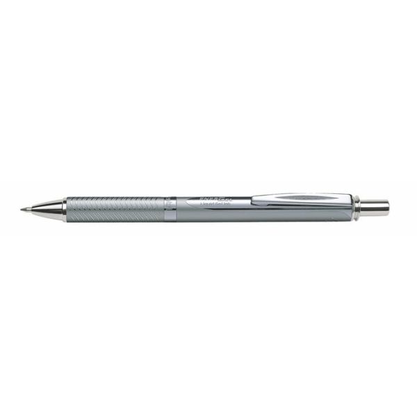 Gélové pero, 0,35 mm, stláčací mechanizmus, telo pera: strieborná, PENTEL "EnerGel BL-407" modrá