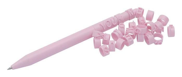 Nasadením krúžkov na písmená na telo pera si môžete pero prispôsobiť a ozvláštniť ho. Ideálna voľba ako darček. - balenie obsahuje 2 gélové perá a sadu 62 krúžkov s písmenami - vymeniteľnú náplň - ružové telo pera - modrý atrament