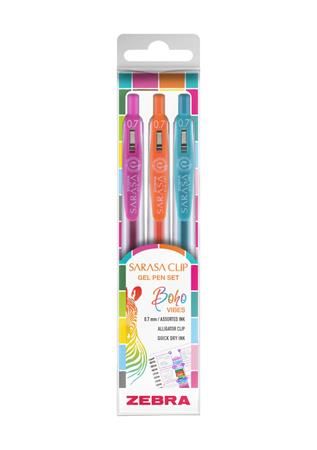 Sada gélových pier, 0,33 mm, s tlačidlom, ZEBRA „Sarasa Clip Boho Vibes“, 3 rôzne farby